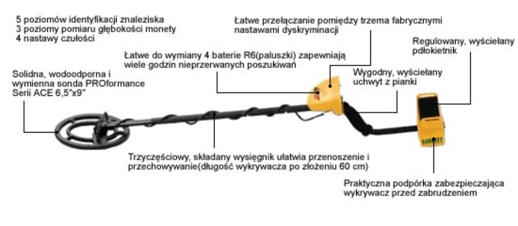 Dyskryminacja pozwalająca na rozróżnianie kategorii wykrywanych obiektów, regulowana czułość, wysoka jakość wykonania, energooszczędność i niezwykła prostota obsługi powodują, że detektory metalu serii Ace są niezwykle skutecznymi i efektywnymi urządzeniami do poszukiwania zagubionych przedmiotów.